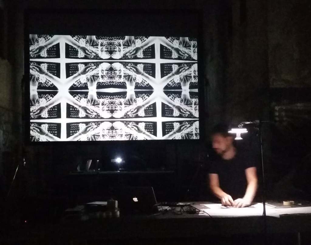 (d)RAW is a graphic-based live electronics performance for a human being and a set of autonomous agents, or scanners, based on an instrument-interface called CABOTO. A graphic score sketched on a canvas is scanned by a computer vision system, interpreted and rendered by an audio synthesizer. The graphic score is a map, traversed by a set of semi-autonomous scanners. The performer tries to keep control over these agents, to exploit their glitches, their failures. The graphic score is projected on the screen, creating a visual feedback of the ongoing process. Inspired by the optical sound experiments by pioneers in Soviet Russia during the 30s, the works by Oskar Fischinger, Norman McLaren, Daphne Oram and Xenakis’ UPIC system, CABOTO tries to challenge the boundaries between the concepts of composition, score, performance, instrument. CABOTO has been developed as part of a Master Research Project at the Institute of Sonology, Royal Conservatoire (The Hague, NL).
